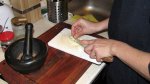 Scoatem pestele din frigider, il umplem cu compozitia preparata mai sus – “umplutura”, si deasupra il “imbracam” in pesmetul aromat.