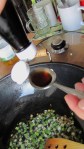 Incingeti uleiul intr-un wok (sau o cratita mai mare) caliti ceapa verde, adaugati supa si cele 2 linguri de sos de soia.