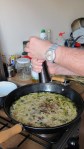 La sfarsit adaugati lingura (mare) de piper macinat, ardei iute uscat si otetul.