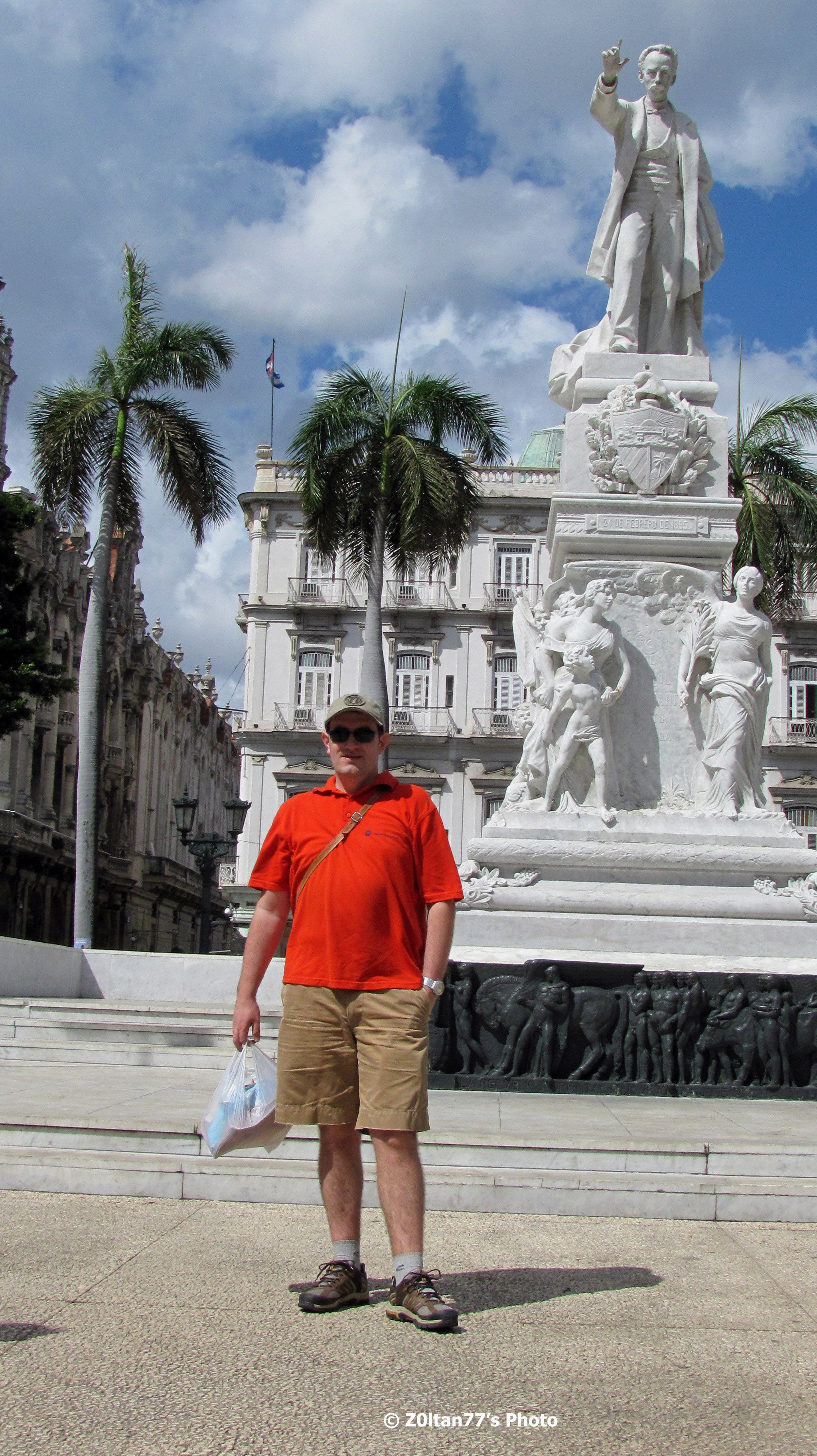 Pe stradute ale caror nume nu-mi aduc acum aminte am ajuns la una din multele piete frumoase ale Havanei la Parque Central, in mijlocul caruia era bineinteles o statuie a poetului lor revolutionar José Martí, persoana cea mai venerata din istoria cubaneza. Nu exista orasel sau chiar satuc in Cuba sa nu aiba in centru o statuie a lui, si strada principala a oricarei localitati se numeste dupa el, la fel si aeroportul international din Havana.