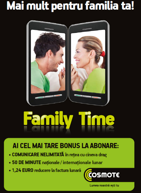 Astfel, odata cu venirea primaverii, COSMOTE Romania le ofera clientilor care au cartela preplatita posibilitatea de a trece la un abonament de voce fara a pierde creditul deja existent, acesta fiind transferat ca reducere pentru prima factura emisa, in limita a 50 de euro plus TVA. De asemenea, utilizatorii de cartela preplatita care se transfera la un abonament de voce pana pe data de 10 mai vor primi si un bonus de 25 minute nationale/internationale in fiecare luna, in plus fata de beneficiile deja incluse in abonament, pentru o perioada de 12/24 luni in functie de perioada contractuala. Oferta este disponibila pana pe 10 mai, cu posibilitate de prelungire. Continue reading