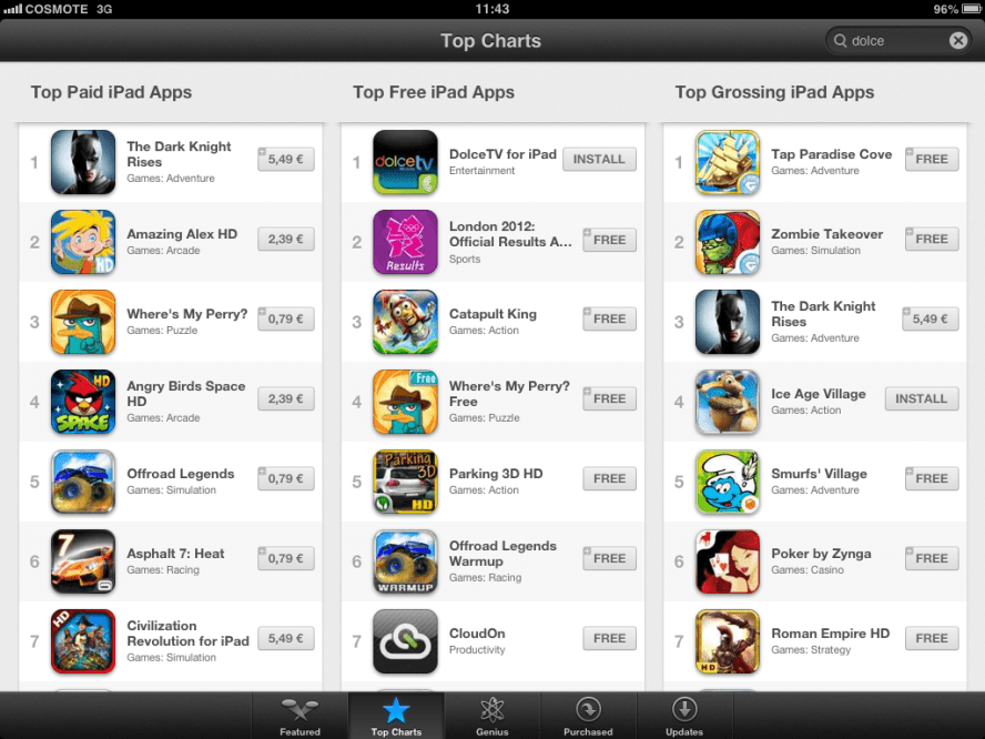 AppStore iPad Published 30 July 2012 at 1024 × 768 in Dolce Mobile TV, powered by COSMOTE, este live ← Previous Next →