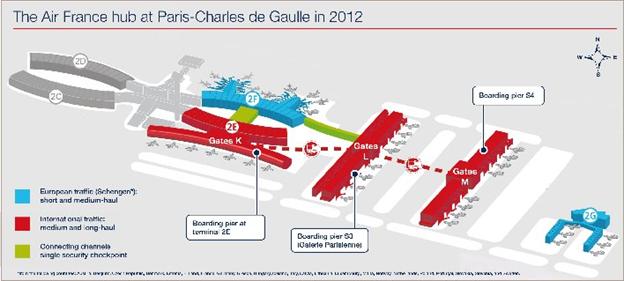 Incepand cu 1 octombrie 2012, pasagerii Air France vor tranzita mai usor si mai rapid aeroportul Charles de Gaulle, datorita reorganizarii terminalelor si infrastructurilor modernizate ale aeroportului: