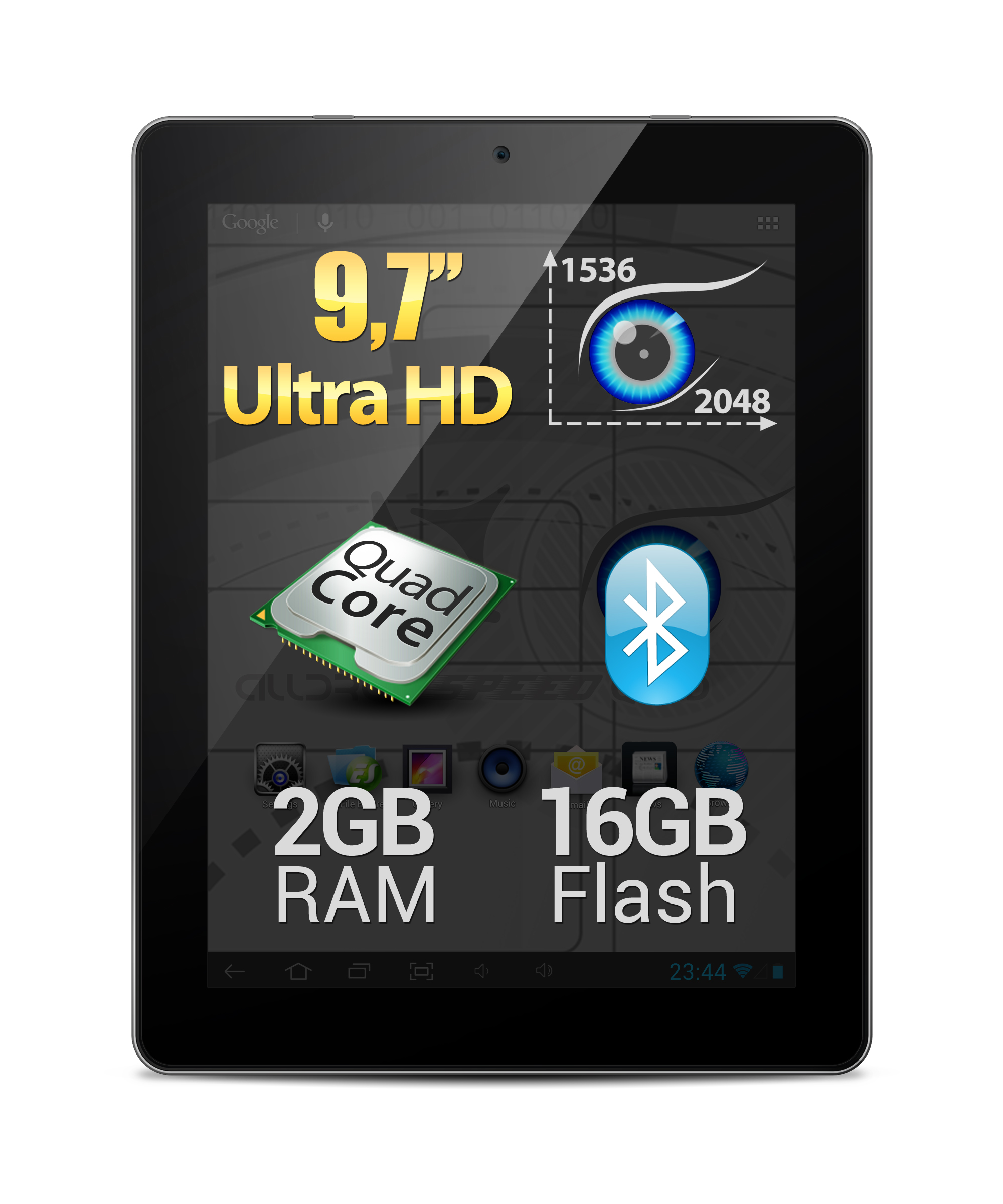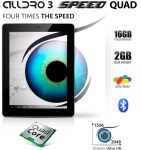 Esenta tabletei Alldro 3 Speed Quad o reprezinta puternicul procesor Quad Core si display-ul IPS de 9,7 inch cu rezolutie Ultra HD, respectiv 2048×1536 px. Acesta afiseaza imagini la o calitate superioara, confera claritate si acuratete imaginilor si filmelor redate, iar tehnologia IPS ofera un unghi de vizualizare sporit. Fisierele multimedia pot fi stocate in memoria flash de 16 GB, ce poate fi extinsa printr-un card MicroSD de pana la 32 GB si pot fi trimise catre alte dispozitive utilizand functia Bluetooth integrata. Datorita tehnologiei mentionata anterior, tableta se poate conecta la boxele S-Tube si S-Bass pentru a intregi experienta multimedia.