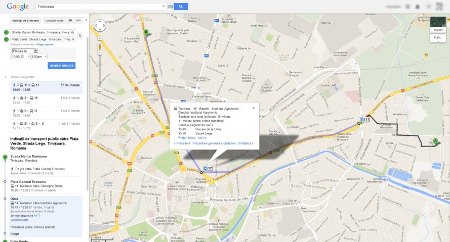 Timisoara Published 11 September 2013 at 1632 × 881 in Transportul public din 7 orase ale Romaniei, disponibil de astazi in Google Maps Next →