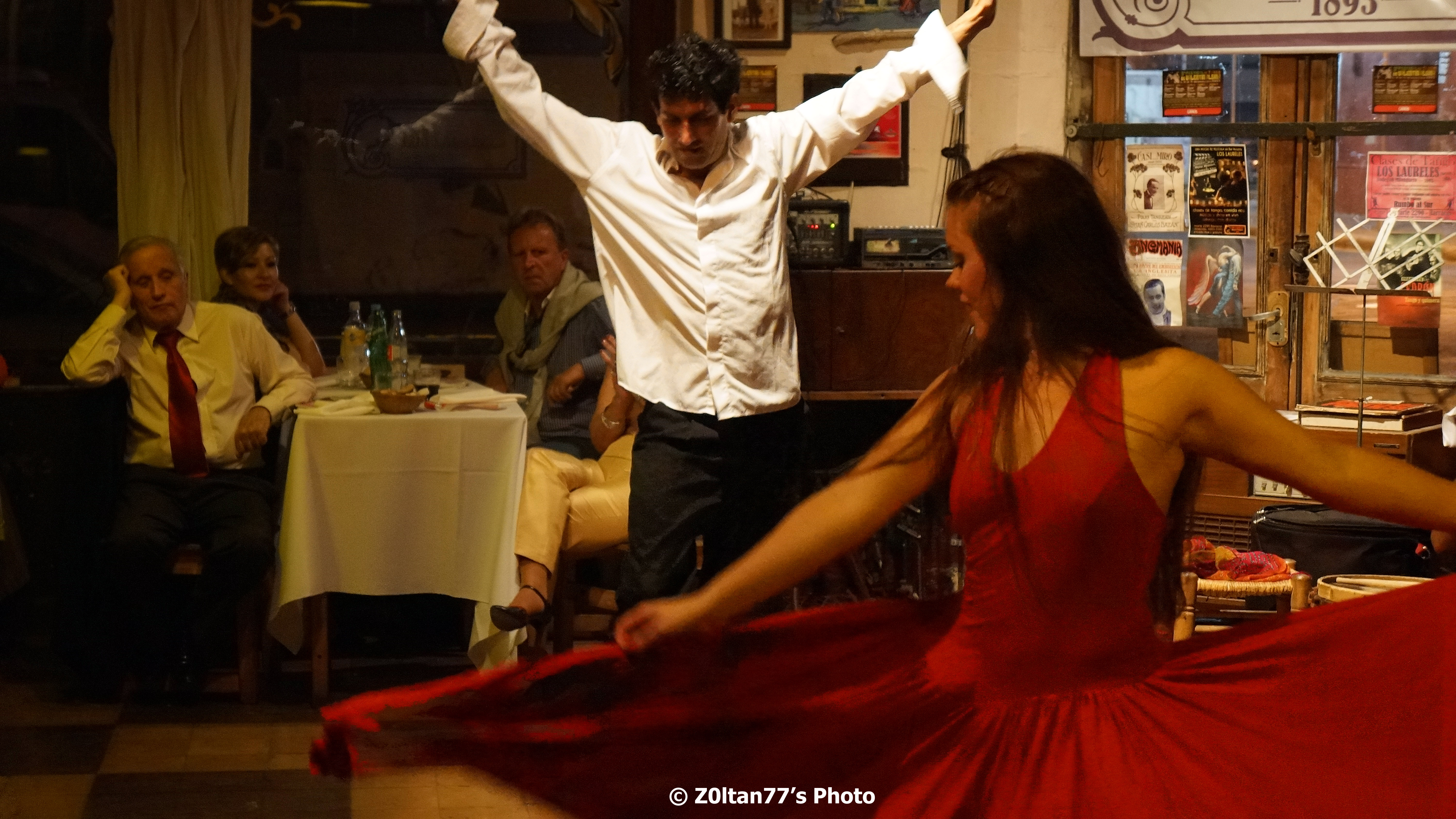 In aceeasi seara am fost apoi si la Barracas unde am mers la barul Los Laureles invitati de cei doi tineri pe care ii cunoscusem in aeroport. Am schimbat numere de telefon si adrese de facebook si a ramas sa ne anunte cand au o seara pentru o milonga “originala” adica a oamenilor obisnuiti, nu de spectacol. Si desi ne-a luat 1 ora si jumatate sa ajungem si ne-am si ratacit nitel prin cartierul Baracas pe stradute nu foarte prietenoase, am ajuns. Si a meritat. A fost deosebit si foarte, foarte placut totul – mancarea, oamenii, dansatorii.![]() |