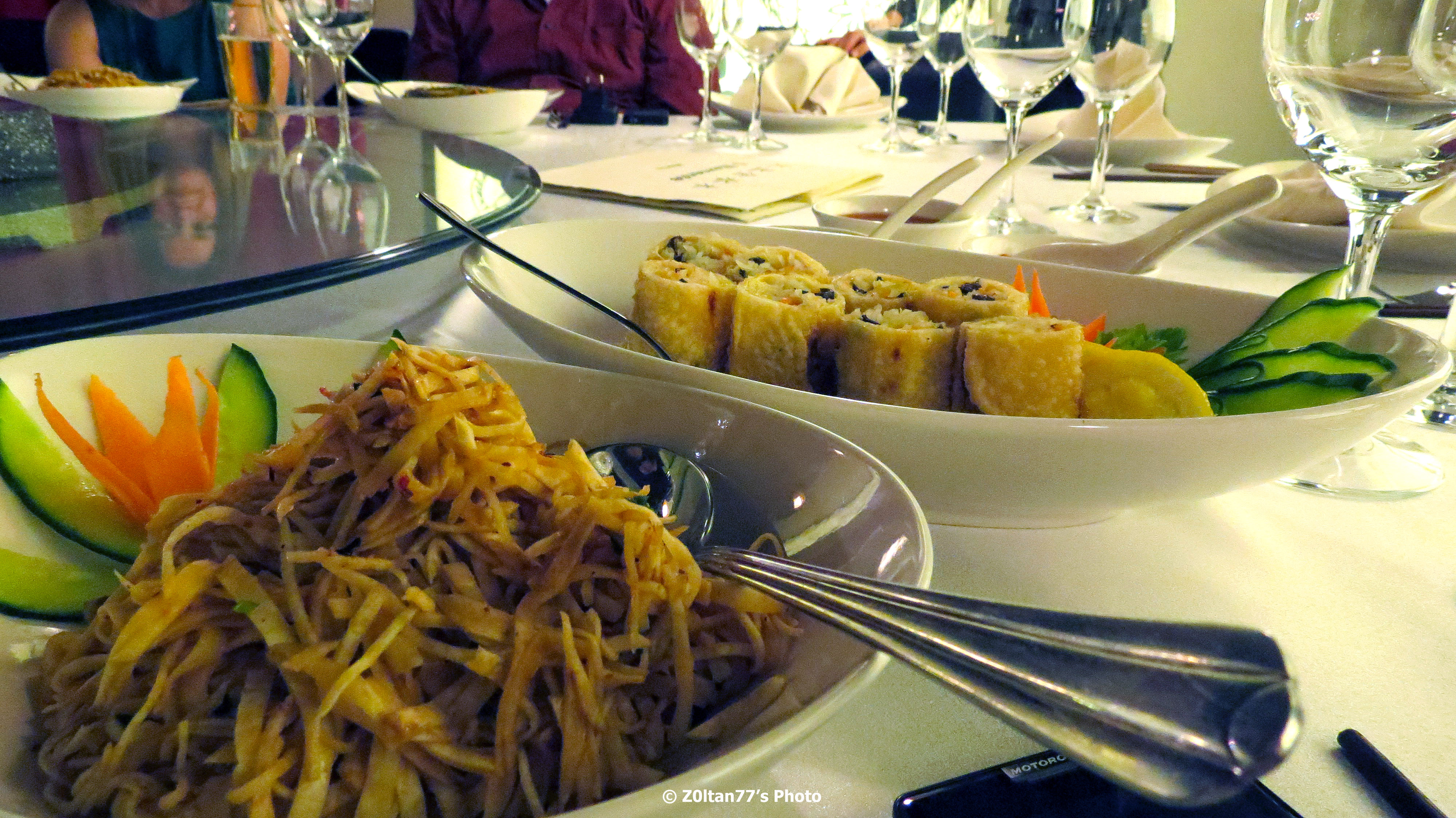 Am inceput cu clasicele pachetele de primavara, care sunt prezente in meniul oricarui restaurant (chiar si fast food) care se doreste a fi chinezesc. Doar ca erau diferite, mult mai bune, se vede ca se prepara in casa in fiecare dimineata (deci posibil ca din cand in cand sa nu mai fie, daca se termina) si nu congelate si incalzite in ulei ca-n alte parti.