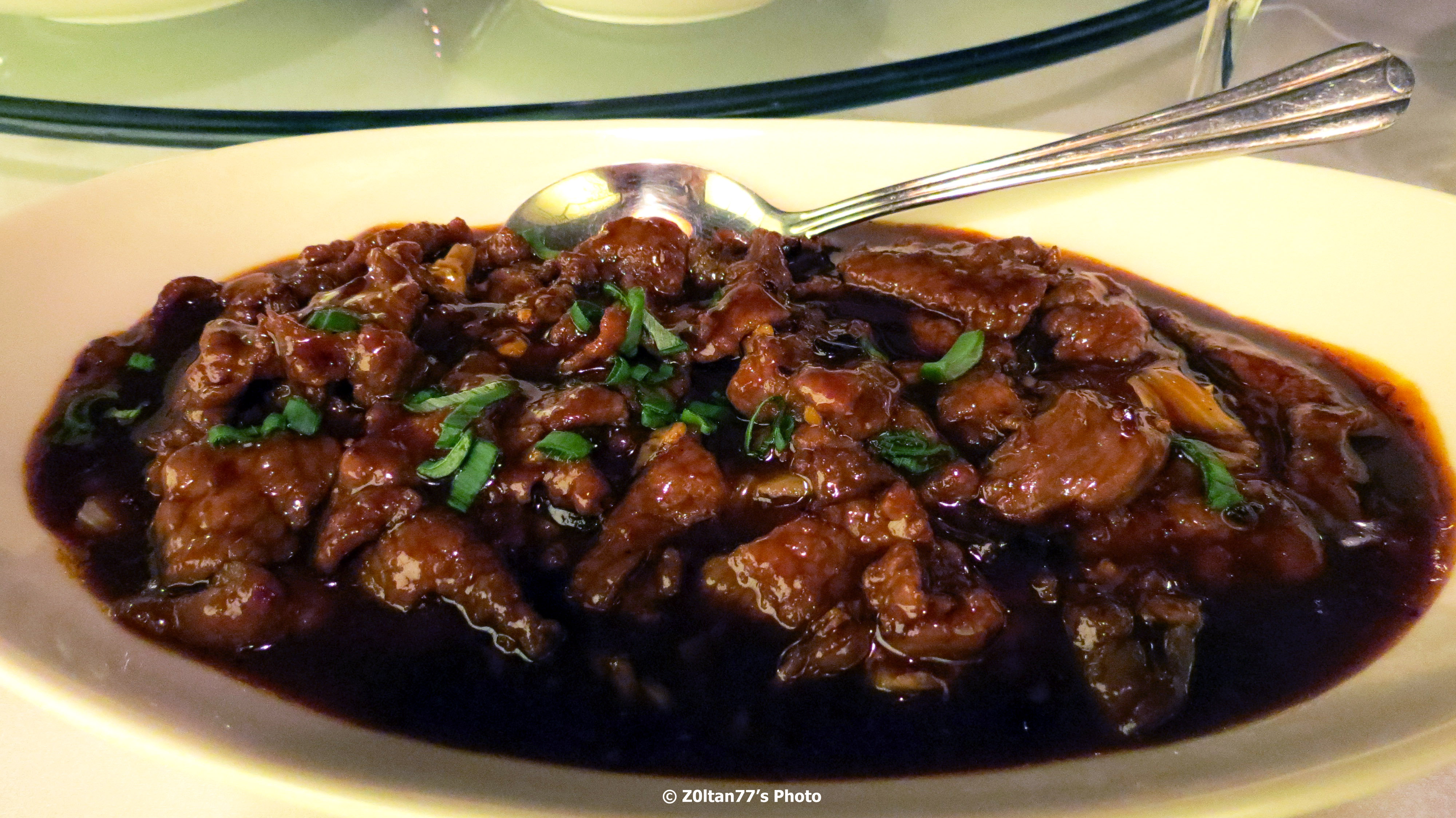 Din pacate pozele (oricum nu foarte reusite, nu aveam echipament necesar pentru a fotografia la lumina asta de ambient) nu pot reda cat de fraged, zemos si gustos e, nu e foarte picant e un picant placut si sofisticat, se mai simt cateva condimente. Am reusit aproape singur sa termin o portie, portiile sunt mari, si recomand cand sunteti mai multi sa comandati diferite sortimente sa gustati mai multi (cam asa se mananca la chinezesc oricum).