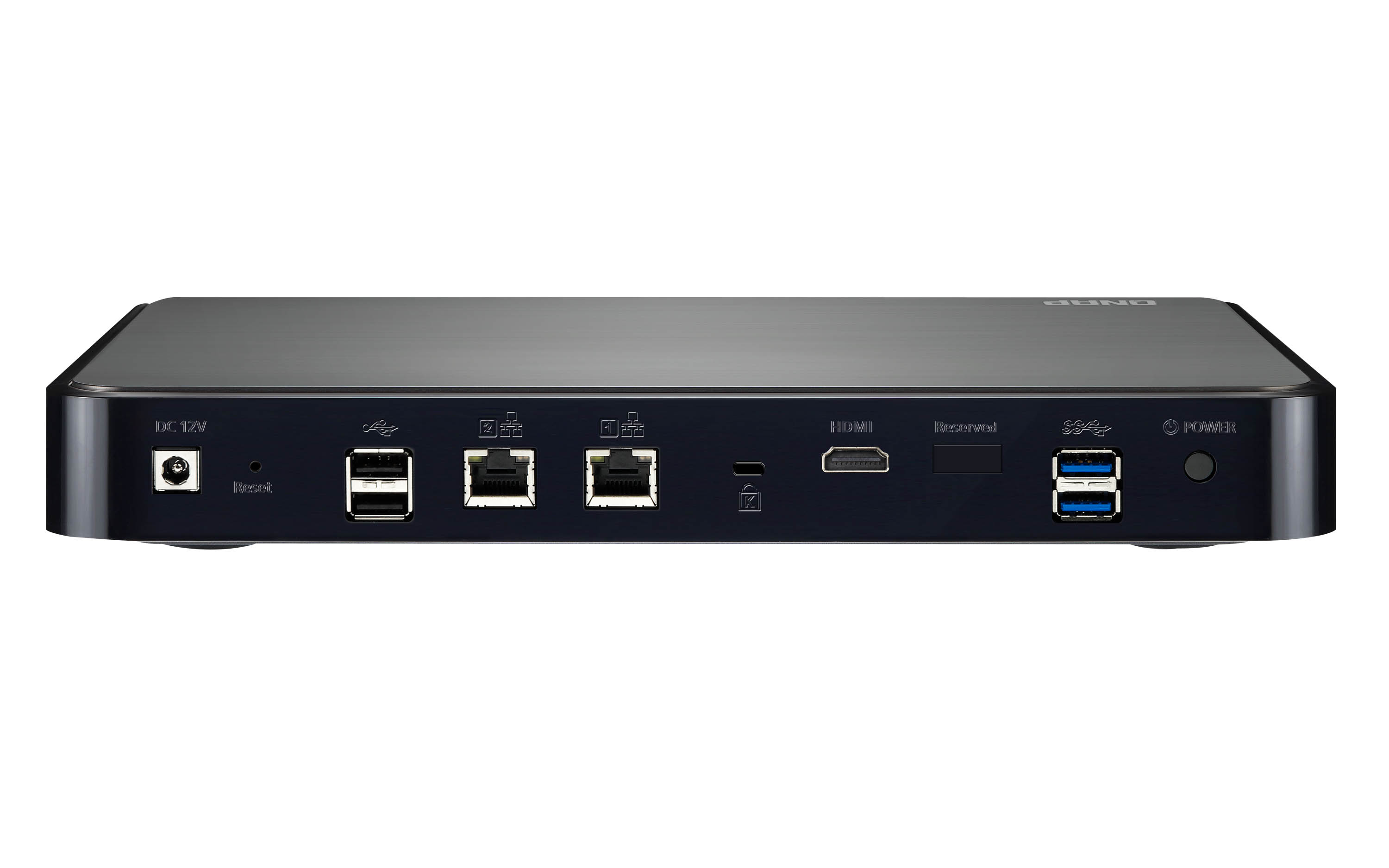 Design Set-top, doua sertare, procesor Intel Dual-Core 2.41 GHz, memorie RAM 1GB DDR3L, SATA HDD/ SSD, hard disk-uri hot-swappable, 2 porturi USB 3.0, 2 porturi LAN Gigabit, iesire HDMI.