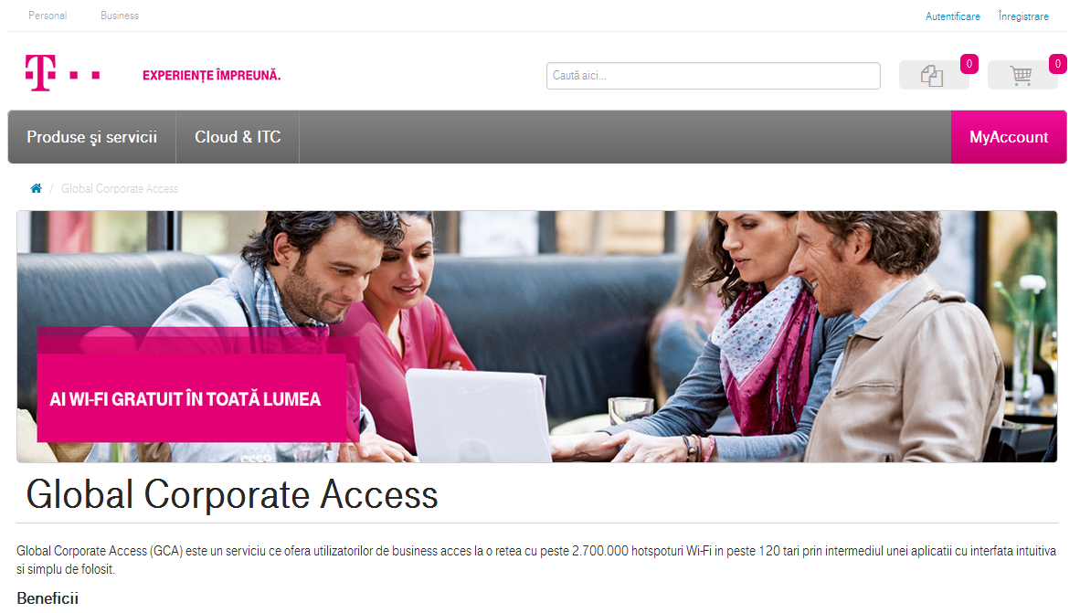 - Global Corporate Access (GCA) este un serviciu care permite acces la cea mai mare retea Wi-Fi de business din lume, cu peste 2.700.000 hotspot-uri in peste 120 de tari;