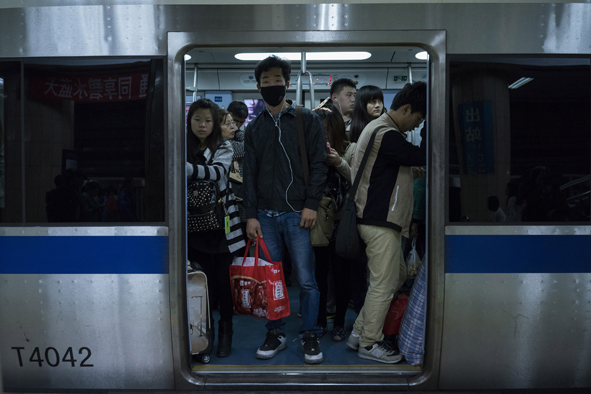 Passengers ride the Beijing Subway in Beijing, China in October 2014 Published 19 November 2014 at 591 × 394 in #FutureofCities, primul proiect fotografic lansat prin programul Sony Global Imaging Ambassadors ← Previous Next →