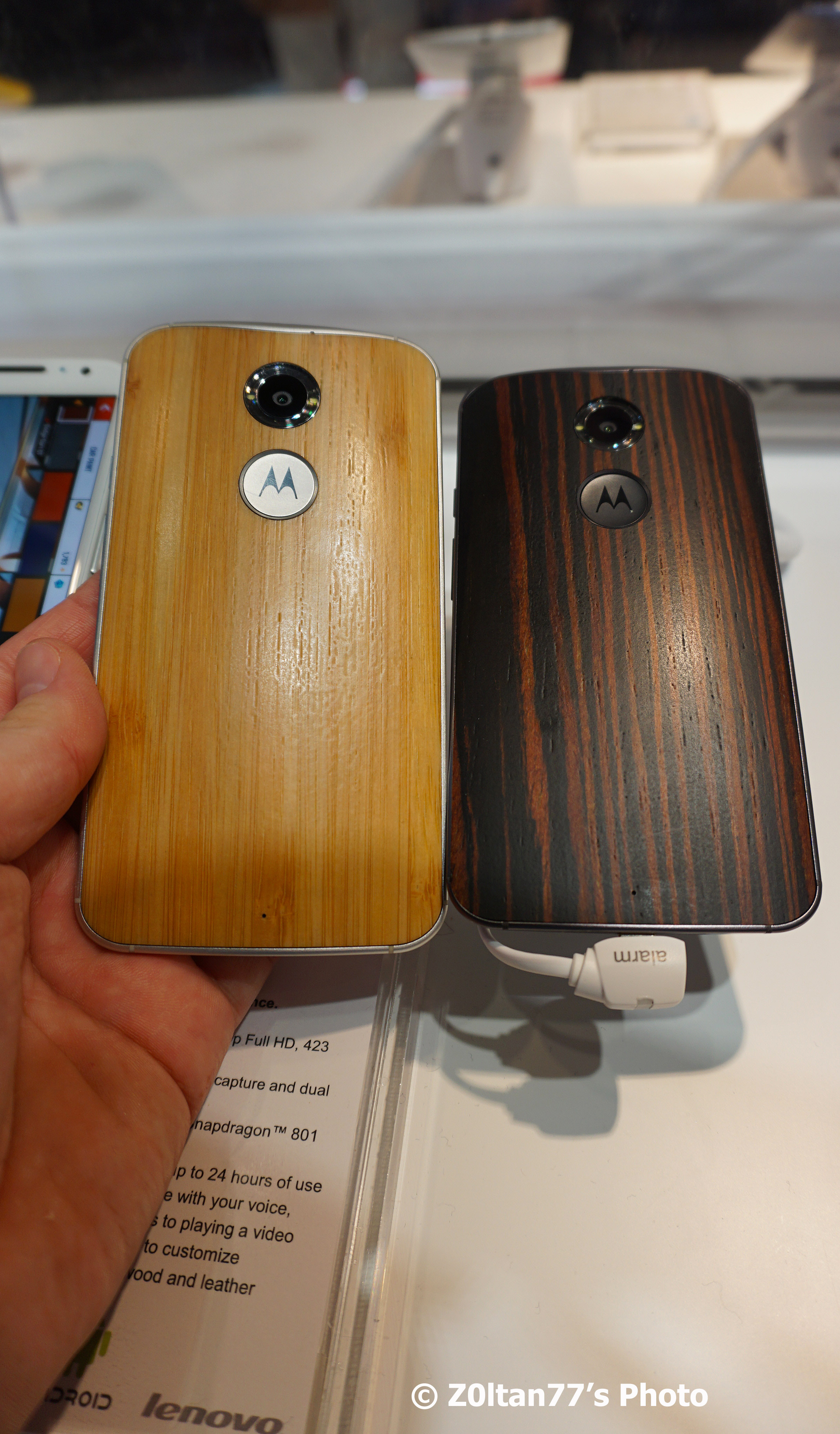 Recunosc abia asteptam sa pun mana pe produsele Motorola, nu ai foarte des ocazia pe la noi prin Europa (se va schimba si asta cu ajutorul Lenovo), deci am profitat la maxim. Sigur MotoX-ul (review) a fost vedeta, atat cu spate de bambus cat si cel cu piele, e masterpiece, nu-ti vine sa-l pui jos din mana, greu ma abtin sa nu iau unul si pe varianta de piele 🙂