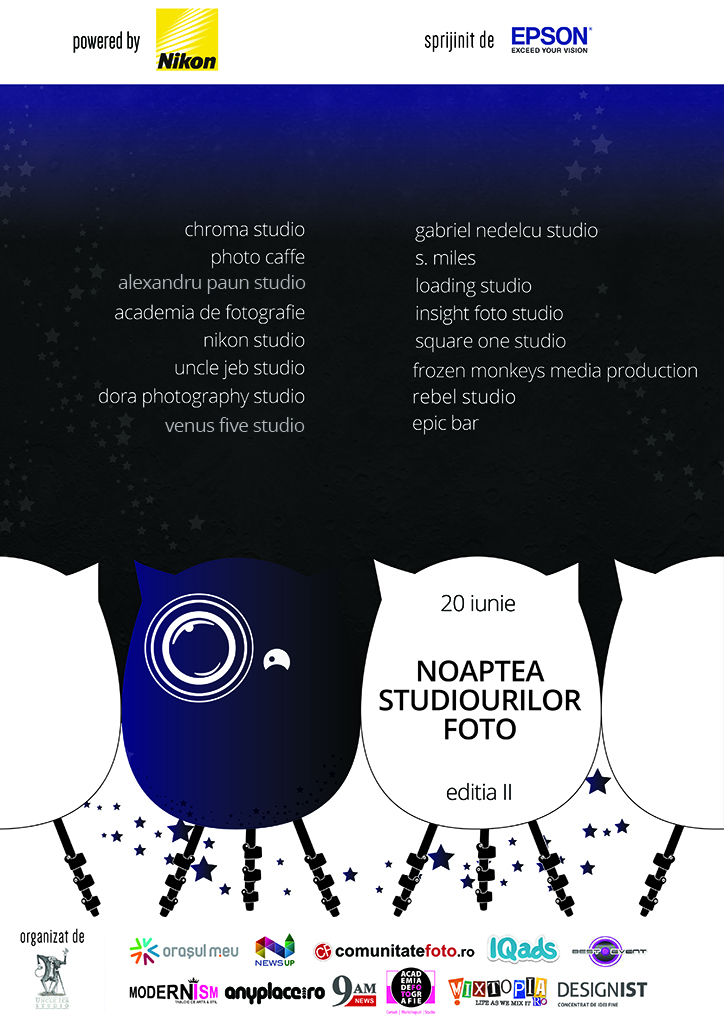 Editia a doua a evenimentului “Noaptea Studiourilor Foto”, organizat dupa modelul deja cunoscut al altor nopti albe (Noaptea Muzeelor, Noaptea Galeriilor, Noaptea Agentiilor), are loc in acest weekend in Bucuresti si Iasi. Evenimentul, organizat si in acest an in parteneriat cu Epson, va demara sambata, 20 iunie cu incepere de la ora 10.00 si va tine pana la miezul noptii.