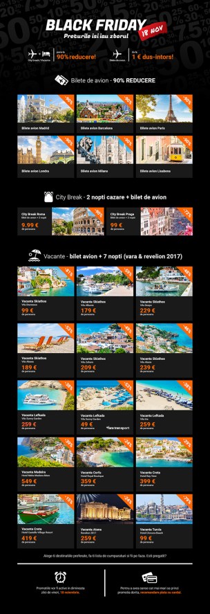 vola-ro-black-friday-final Published 17 November 2016 at 580 × 1694 in Pe 18 noiembrie, Vola.ro lanseaza cea mai mare campanie de Black Friday din turismul romanesc, bilete de avion de la 1 euro si city break de la 9,99 euro! Next →